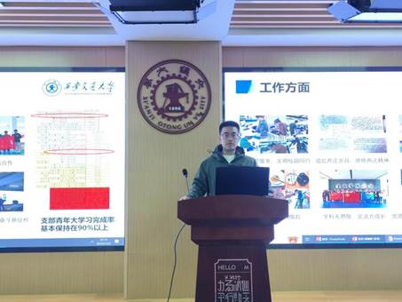 S3091团支部书记王悦聪带来“如何做好团支部工作”的经验分享。他结合支部工作情况,从作为团支书和团支部成员多个角度出发,详细说明了团支部工作如何高效开展,特色团支部如何培育等,用自身经历阐释如何真正做好一名团支书。