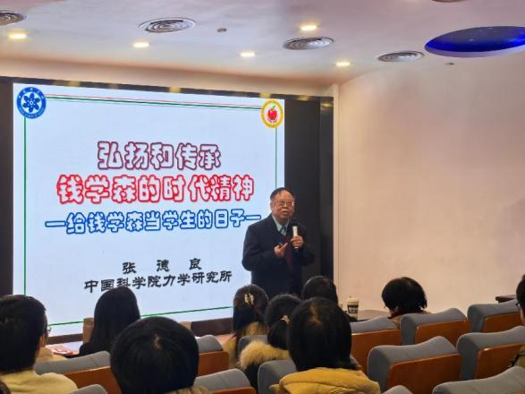 为弘扬钱学森时代精神,传承其宝贵学术思想与育人智慧,在“钱学森日”即将到来之际,12月10日,航天学院文治书院师生联合党支部举行“传扬钱学森时代精神”主题党日,组织成员参与了由钱学森图书馆主办的“弘扬和传承钱学森的时代精神——给钱学森当学生的日子”主题讲座。活动特邀师从钱学森先生与郭永怀先生的中国科学院力学研究所研究员、中国科学院大学教授张德良担任主讲,生动再现了钱学森的伟大建设事业与治学育人场景,为在场师生带来了一场深刻的思想启迪。