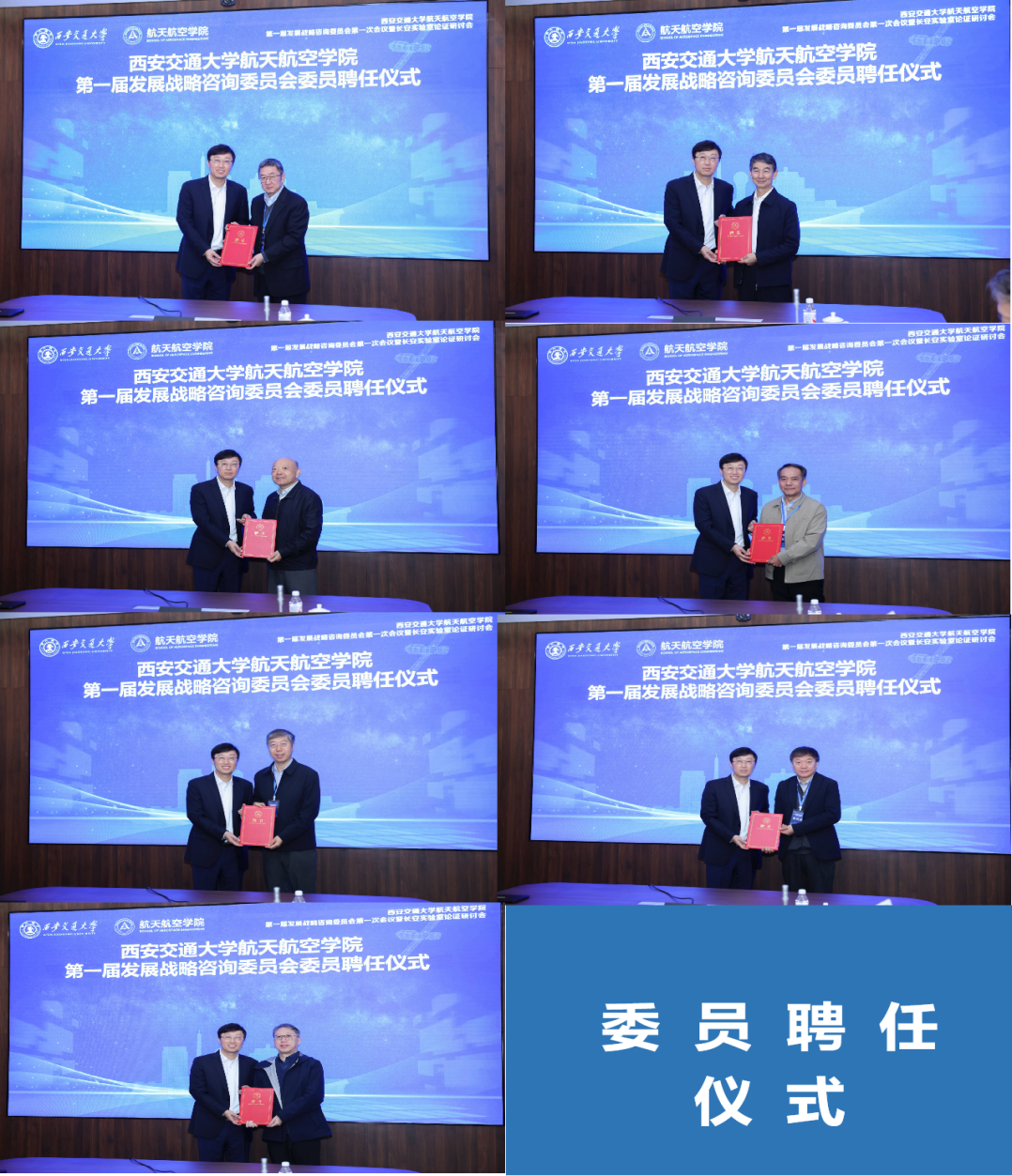 张立群依次为第一届在场出席委员会的委员何国威、郭万林、陆夕云、周又和、冷劲松、赫晓东、郭旭颁授聘书。